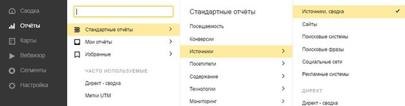 Более глубоко анализировать трафик лучше всего с отчета «Источники, сводка»:
