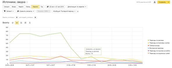 Поэтому, если вам кажется, что что-то не так, в первую очередь стоит посмотреть, как изменился трафик в зависимости от источника.