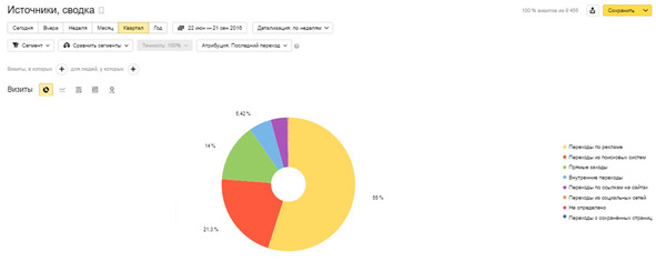 Если вывести эту же информацию в виде круговой диаграммы, то за выбранный отчетный период можно посмотреть процентное соотношение в зависимости от источника: