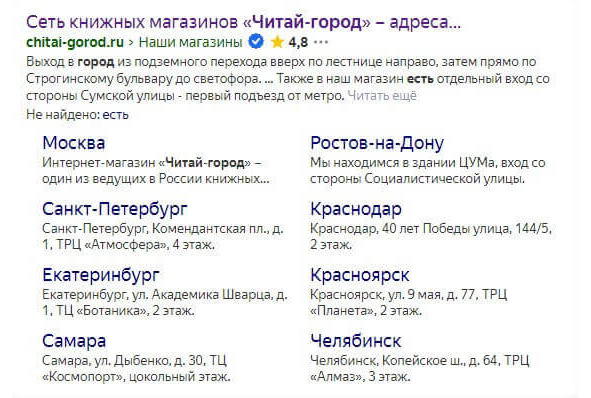 Еще одно существенное отличие интернет-магазинов от маркетплейсов – это наличие у первых оффлайн-точек. Вернемся к нашим примерам: у «Читай-города» есть магазины в разных городах.