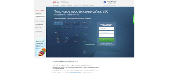 В первом экране обозначено свое уникальное торговое предложение: разрабатываем ресурсы, которые уже готовы к SEO-продвижению.