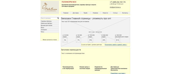 Как видите, не все перечисленные выше разделы задействованы – для интернет-магазина садовых фигур выбрали те, которые интернет-маркетолог посчитал наиболее важными для целевой аудитории заказчика: