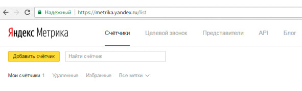Для создания счетчика Яндекс. Метрики перейдите по ссылке https://metrika.yandex.ru/list, будучи залогиненным под своим аккаунтом, и нажмите кнопку «Добавить счетчик»: