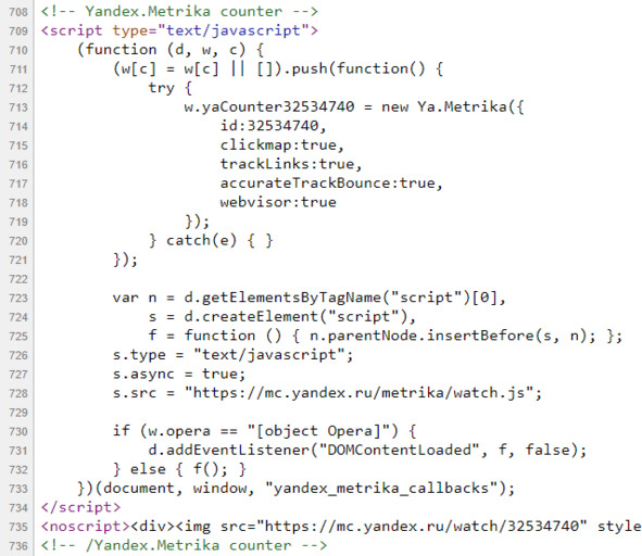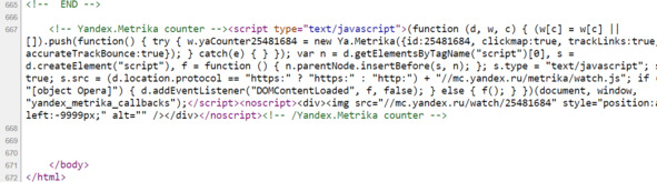 Рис.21. Вид кода счетчика Яндекс. Метрики в коде сайта