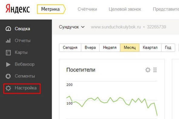 По умолчанию при переходе в любой счетчик отражается общая Сводка по сайту. Для проверки нужно перейти на вкладку «Настройка» в боковом меню счетчика.