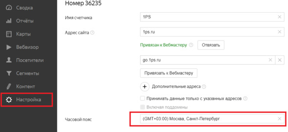 Рис.26. Настройка часового пояса в Яндекс. Метрика