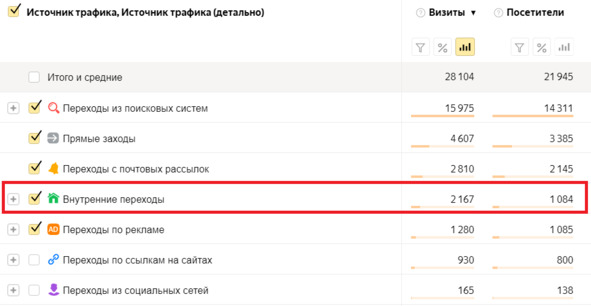 Рис.27. Внутренние переходы в Яндекс. Метрике