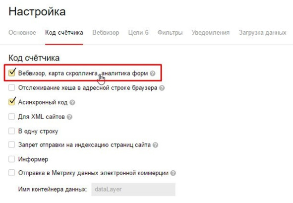 Здесь самые важные тонкости, это включение Вебвизора. Нужно обязательно включить галочку «Вебвизор, карта скроллинга, аналитика форм», иначе эти инструменты работать не будут. Они важны для анализа поведения пользователей на сайте.