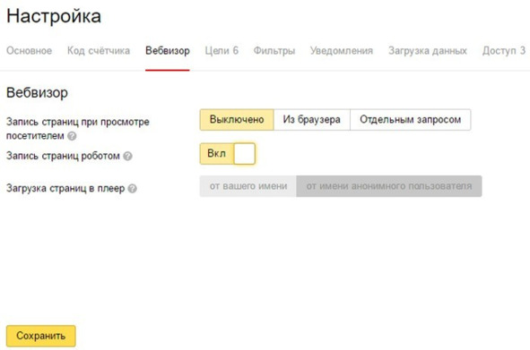 В настройках работы Вебвизора тоже есть тонкости. Они связаны с тем, как будет происходить запись страниц сайта, которые просматривают посетители. И будет ли вообще происходить эта запись.