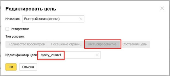 Затем, чтобы данные о цели засчитались, на сайте в коде элемента необходимо добавить функцию с нашим параметром:
