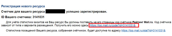Рис.80. Ссылка на получение кода счетчика Top.Mail