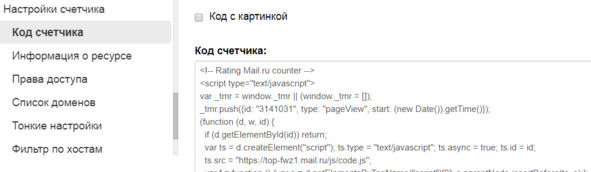 Также код счетчика доступен в левом меню «Настройки счётчика -> Код счётчика».