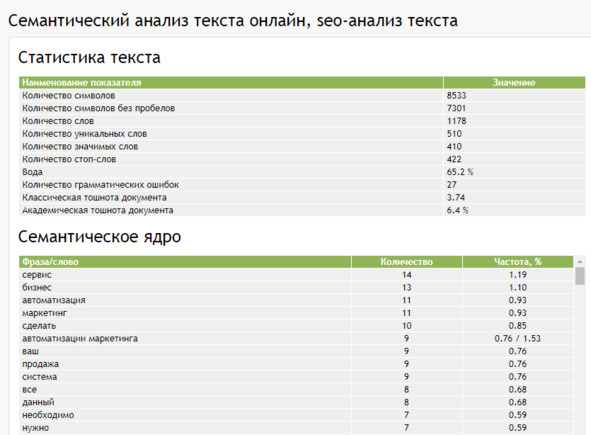 Воспользуемся сервисом advego и проведем семантический анализ: