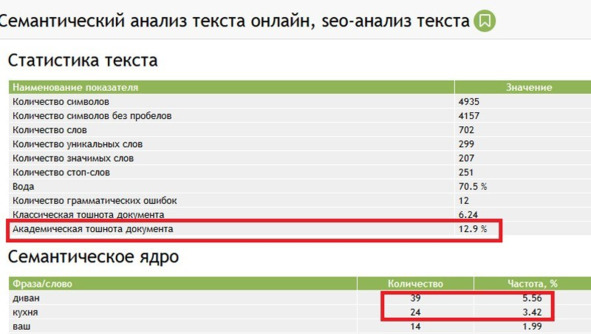 Упс … по общепринятым SEO-нормам, наша статья уже переспамлена. Академическая тошнота – 12,9%, в то время, как мы сами рекомендуем не более 10%.