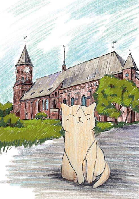 Однажды рыжий кот в пиджаке прилетел в Калининград. Его звали Рыжик. Сразу по прилете он решил поехать в Музей янтаря. Когда он приехал и начал исследовать экспонаты, в одной из комнат увидел большую фигуру кота, сделанную из янтаря. Он захотел забрать ее себе в качестве сувенира, но у него не было денег, чтобы расплатиться, поэтому он решил украсть фигурку. Выждал момент, когда в зале никого не будет, запрыгнул на стол, на котором стояла его добыча, и потащил за собой на выход из музея. Но вот беда, на самом выходе его заметили и начали погоню за ним. Его хотели поймать и отдать в приют, а изделие из янтаря вернуть на место. Но не тут-то было. Благодаря своим маленькими размерам кот залез в трубу и скрылся. А когда поняли, где его искать, он уже был далеко от места преступления. Так как в городе на него могли начать охоту и поймать, он решил уехать в другой город. Поэтому в срочном порядке отправился в свой родной городок Зеленоградск – в город котов.