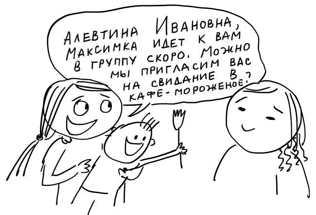 В это время родители продолжают приводить детей. Они хотят познакомиться с новым воспитателем, задать вопросы, рассказать про особенности своего ребенка.