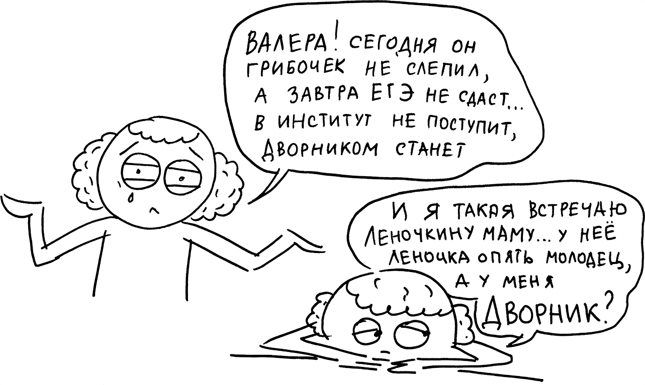 * * *Прекрасно помню первый урок в школе раннего развития, куда я привела, а точнее принесла, своего полуторагодовалого старшего сына. Школу порекомендовала знакомая, ее ребенок, мальчик Семен, уже посетил пять занятий. «О ужас! – подумала я. – Мы отстали от Семена на целых пять занятий!» – и полетела в ближайший магазин канцелярских товаров за пластилином. (Такое было условие в этой школе: принести с собой пластилин.) Это так волнительно: покупать первый пластилин первому ребенку. Мамы поймут.