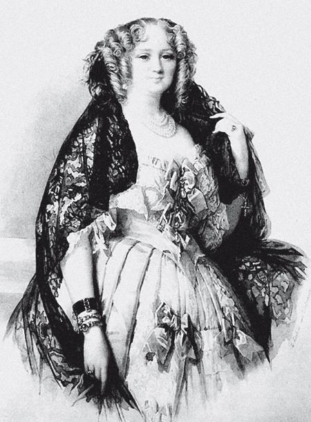Этому описанию вполне соответствует портрет княгини Радзивилл работы Л. Фишера с оригинала Ф.К. Винтергальтера.