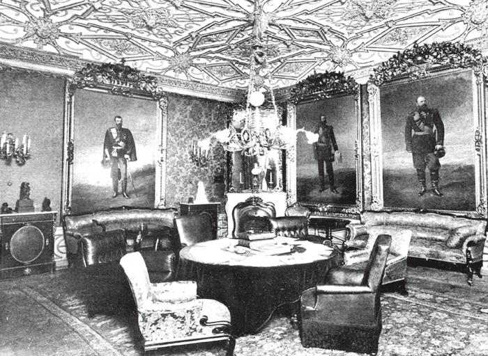 В портретной гостиной на стенах висели изображения всех государей, в чье царствование собрание уже существовало, кроме императора Павла, не признававшего его, как и любые публичные собрания.