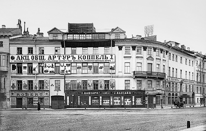 В 1786 году английский магазин Пикерсгиля открывается, но не в его доме, а в смежном, на углу Невского и Большой Морской (№ 16/7), где ему и суждено было, меняя владельцев, оставаться около ста лет.