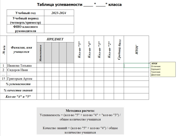 Создать итоговую таблицу успеваемости класса (15 человек, 5 предметов) провести логический анализ хорошист, отличник, двоечник.
