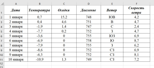 Построить диаграмму метеонаблюдений за десять дней, проанализировать среднесуточные температуру, влажность и давление.
