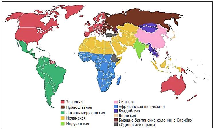 Илл. 1. Карта территориального расположения современных локальных цивилизаций по С. Хантингтону