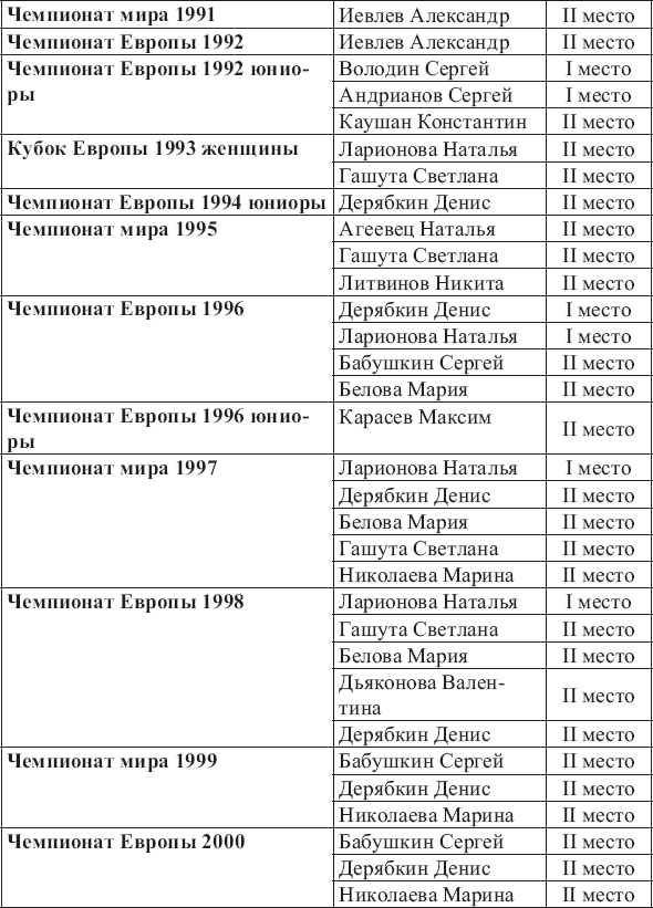 Представляется необходимым отметить вклад в подготовку ряда спортсменов нашей сборной Шамирова А. С., совместно с которым автор проводил подготовку: Сергея Володина, Никиты Литвинова, Валентины Дьяконовой, Андрея Зацепина, Ислама Чемурзиева и др.