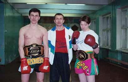 Автор со своими учениками: чемпионом мира по кик-боксу Сергеем Андриановым и чемпионкой Европы и мира по сават, трехкратной чемпионкой мира по кик-боксу Натальей Ларионовой.