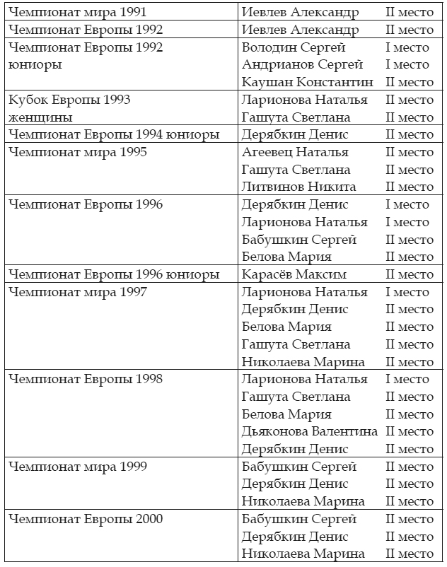 Команда ГУФК им. П. Ф. Лесгафта являлась лидером соревнований в России, её результаты на чемпионатах Европы и мира по боксу сават (тренер А. А. Петрушин) приведены в таблице: