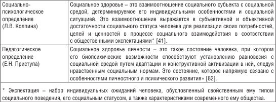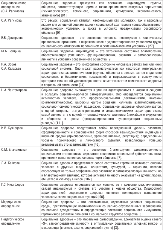 Теоретические подходы к трактовке понятия «социальное здоровье» можно представить в виде следующей таблицы (табл. 1).