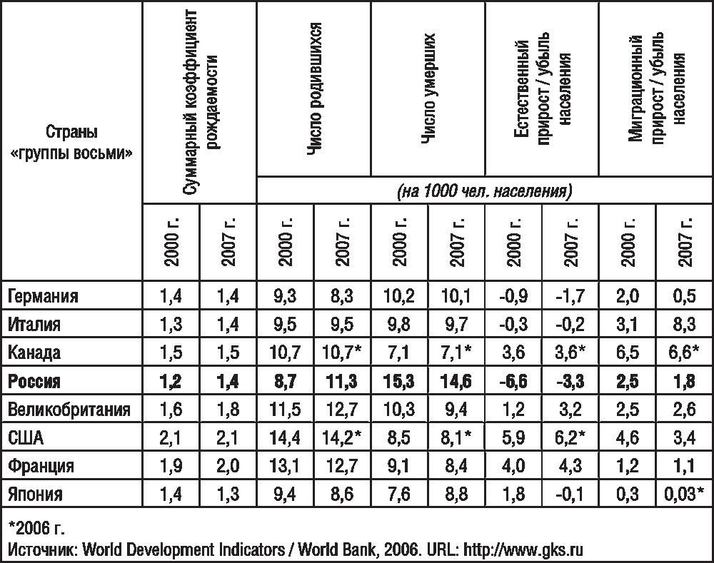 Таблица 1.2. Демографическая ситуация в России в сравнении с некоторыми странами мира с первым типом воспроизводства населения