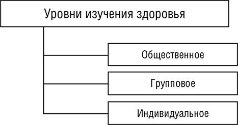 Здоровье служит предметом изучения многих наук. Обобщение теоретико-методологических подходов к изучению здоровья позволяет выделить несколько его уровней: индивидуальное здоровье – здоровье одного человека (представляющее микроуровень изучения), здоровье нескольких человек – групповое здоровье (мезоуровень) и общественное здоровье – здоровье населения страны или отдельных её территорий, а также крупных демографических групп населения (макроуровень; рис. 1.1).