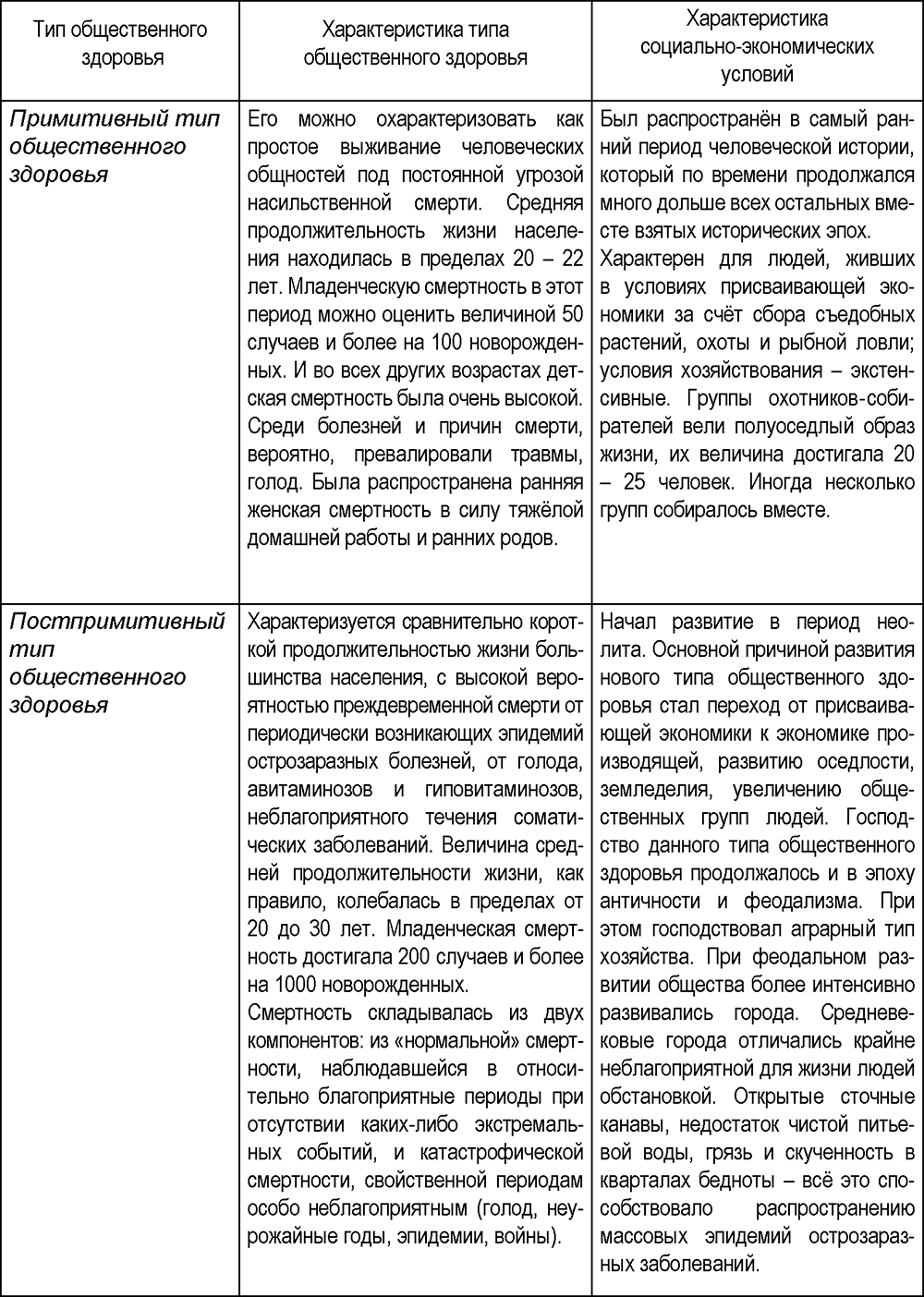 Характеристика основных исторических типов общественного здоровья