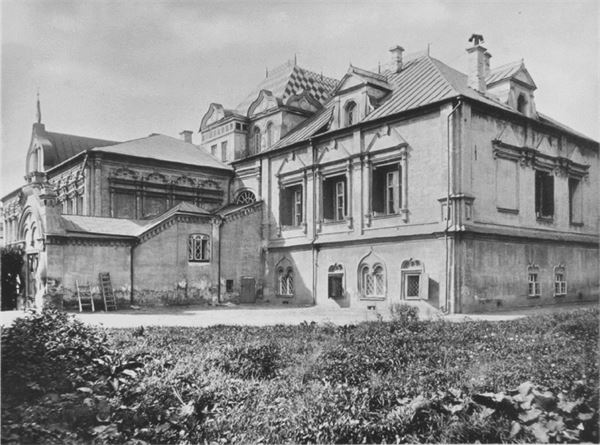 Реконструкция 1892 г. (арх. Н.В. Султанов) в дань существовавшей тогда моде стилизовала здание «под старину», что заметно проявилось в пышном декоре, обильно покрывшем стены, в узорчатой кровле с флюгерами, оконницах и других элементах. В конце XIX в. западный корпус был надстроен третьим этажом (архитектор В.Д. Померанцев). Постройки заднего двора относятся к 1895 г., стилизованная чугунная ограда – к 1913 г.