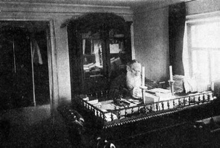 Как и в Ясной Поляне, сидел он на низком стуле, ножки которого были укорочены – чтобы ему было лучше видно, так как Лев Николаевич, будучи близоруким, очков не носил. Судя по всему, писать, сидя на таком стуле, было не очень удобно, ведь роста Толстой был высокого. Иногда после долгих часов сидения за столом он вставал и подходил к пюпитру, ставя его к окну, продолжал писать на нем. Любил писать при одной свече.