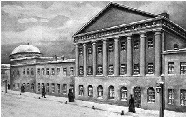 «Математику, механику и физику, – продолжает Милютин, – преподавал Дм. Матв. Перевощиков, который был вместе с тем директором астрономической обсерватории (впоследствии был академиком); Мих. Александр. Максимович – естественную историю; Лев Алекс. Цветаев – римское право; русское же законоведение в 5-м классе преподавал Кольчугин, а в 6-м – проф. Сандунов; латинскую словесность и римские древности – проф. Кубарев; русскую словесность – поэт Раич, а в 6-м классе – проф. Мих. Троф. Каченовский, который читал и курс эстетики. Священник Терновский преподавал как закон божий, так и греческий язык. Из всех преподавателей наиболее выдавались Перевощиков, Сандунов, Цветаев и Каченовский.