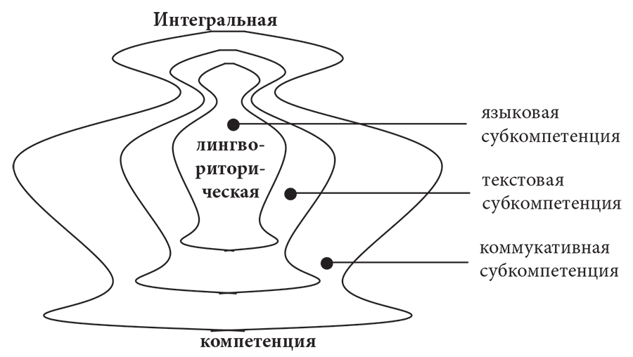 Интегральная ЛР компетенция – совокупность знаний, умений и навыков в области языковых операций, текстовых действий и коммуникативной деятельности; при этом языковая субкомпетенция соотносится с лингвистикой, текстовая и коммуникативная – с риторикой (см. рис. 1):
