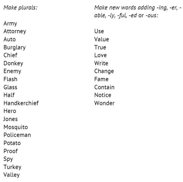 There are 34 pupils in my class, 24 learn English, 6 study Maths and 4 specialise in history. (sentences with a few numbers).