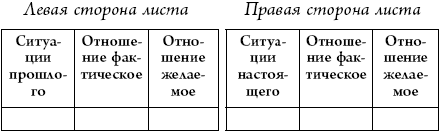 На правой половине большого листа вы должны описать ситуации текущей жизни, на левой – те, что случались в прошлом.