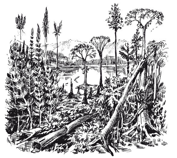 Так выглядело Подмосковье во время каменноугольного периода. Большую часть времени на его месте плескалось море. Изредка оно отступало и тогда суша заселялась растениями и животными. Теперь от древних лесов остались лишь пласты бурого угля.