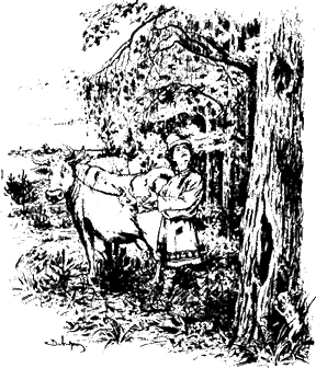 Прислушался Емеля, как береза поскрипывает, и почудилось ему, что береза про корову его опрашиваешь. Остановился Емеля и говорит: – Что, земляк? Али на корову заришься?.. Что ж, корова ничего себе, в аккурат…