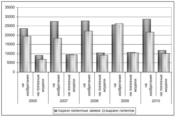 Рис. 1.7. Динамика поданных и выданных патентных заявок