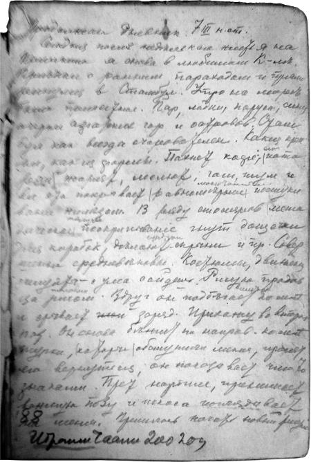 Одна из страниц дневника А. Грищенко.