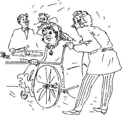 – Ещё! Ещё! Ещё! Ставь ещё! – крича́ла ба́бушка. Я уже́ не противо-ре́чил и, пожима́я плеча́ми, поста́вил ещё двена́дцать фридрихсдо́ров. Колесо́ верте́лось до́лго. Ба́бушка про́сто дрожа́ла, следя́ за колесо́м. «Да неу́жто она́ и в са́мом де́ле ду́мает опя́ть zero вы́играть?» – поду́мал я, смотря́ на неё с удивле́нием. Ша́рик вскочи́л в кле́тку.