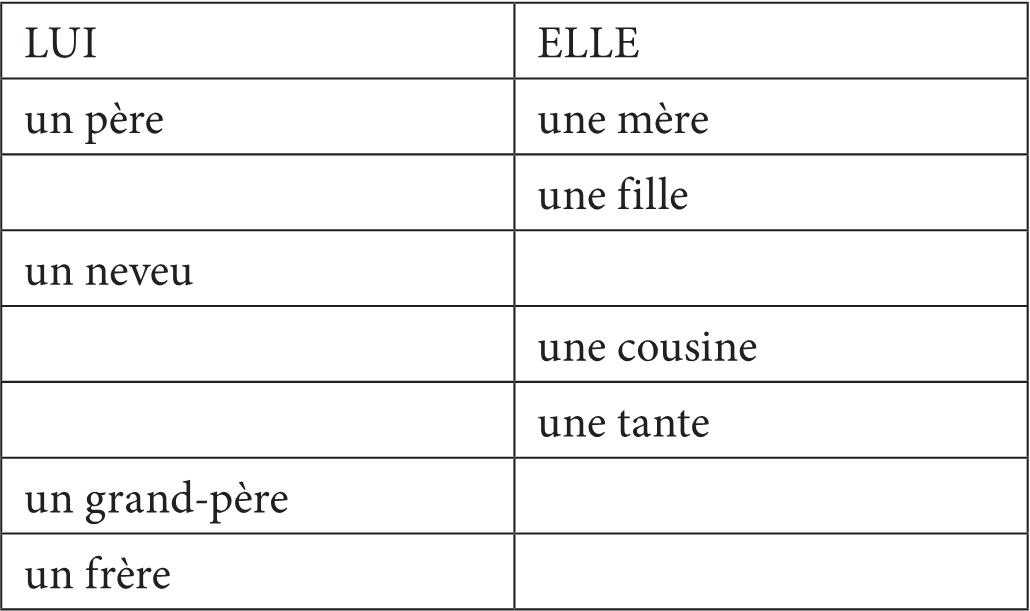 B. Décris des membres de ta famille en une seule phrase.