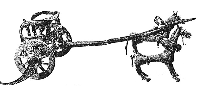 Бронзовая вотивная модель колесницы длиной 19 см и высотой 8 см из холма в Гохеби (Тетрицкаройский район, Восточная Грузия; первая половина – середина I тыс. до н. э.).