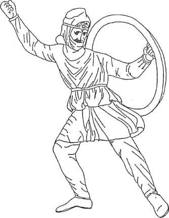Пеший перс со щитом греческого типа. Барельеф южной торцовой стороны «Саркофага Александра» со сценой охоты (последняя четверть IV в. до н. э.).