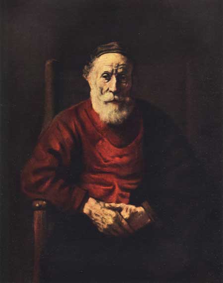 В 1645 году Рембрандт написал два портрета, которые многие считают лучшими его произведениями в этой области. Первый из них (Петербургский Эрмитаж) изображает купца-еврея. Старик в темно-коричневом кафтане и меховом плаще, с худыми до прозрачности руками, смотрит на зрителя спокойным, холодным, несколько презрительным взором. Эта картина уже в XVII веке пользовалась такой славой, что ее стали копировать очень скоро после ее появления. Очень старинные копии ее, довольно близкие к оригиналу, находятся в Касселе и Лондоне. В таком же несколько мрачном и суровом тоне написан и портрет старого раввина (Бекингемский дворец); на лице то же выражение сосредоточенной твердости и проницательности. Но в глубоком взгляде мыслителя скорее можно прочесть не пренебрежение, а снисходительное сожаление к людям, хотя горькая улыбка указывает на многие разочарования, на пережитую людскую неправду и несправедливость.