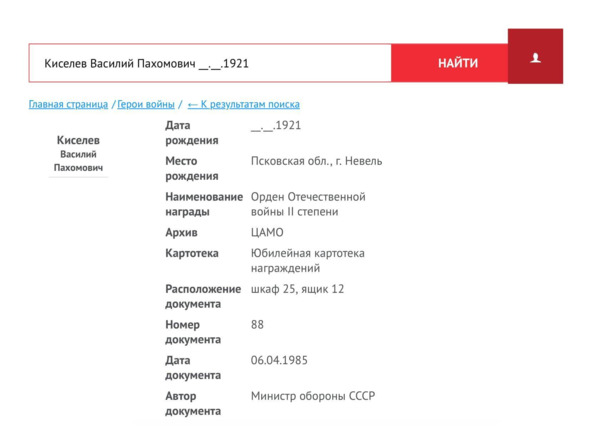 Информация из базы данных сайта «Память народа»